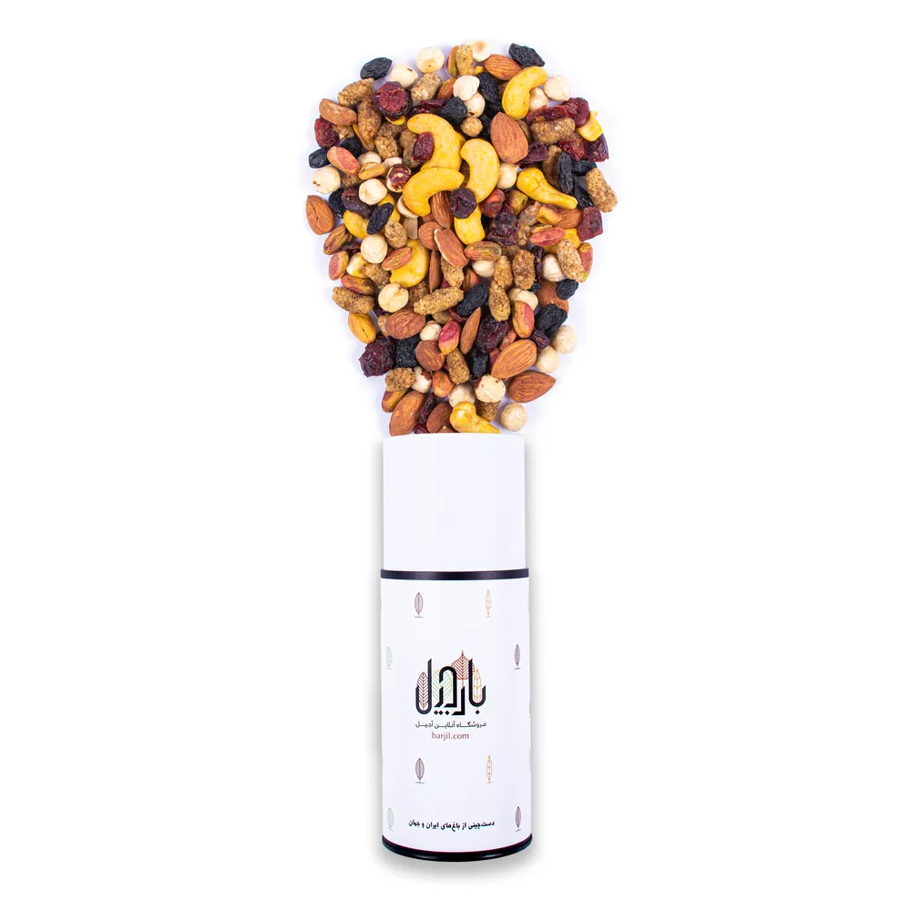 مصرف آجیل و مغزها در برخی از کشورها، جز آداب و رسوم آن مرز و بوم به حساب میآید. بهخصوص در کشور پهناور و غنی مثل ایران که خوردن آجیل در شب عید و شب یلدا، رسم است و سر سفره هر خانهای گذاشته میشود. حالا اگر شما جزو آن دسته از کسانی هستید که مهمانیهای بزرگ برپا میکنید، میتوانید مخلوط مغزهای رویال که یک پذیرایی ویژه و لاکچری است را انتخاب کنید.این محصول یکی از خوشخوراکترین آجیلهایی است که در آن، انواع مغزهای خوشمزه وجود دارد. همانطور که میدانید، هر مغز دارای مواد مقوی و مغذی خاصی است که اگر بهصورت تک تک آنها را برای یک جشن یا دورهمی خریداری کنید، احتمالا قیمت آن برایتان گران تمام میشود! پس به جای اینکه هر کدام از این تنقلات را بهصورت جداگانه بخرید، آجیل مغزهای رویال را که شامل توت خشک اعلی، مغز پسته کشیده برشته زعفرانی ممتاز، کرنبری خشک، کشمش شاهانی، مغز بادام ایرانی برشته زعفرانی، بادام هندی برشته زعفرانی اعلی، مغز فندق برشته اعلی میشود را انتخاب کنید.متخصصان و پزشکان همواره پیشنهاد میکنند که بهصورت روزانه، چند مغز نوش جان کنید. چراکه مغزیجات به دستگاه گوارش بدن کمک میکنند، جلوی پیری زودرس را میگیرند و از بدن در برابر ناراحتیهای روحی و جسمی محافظت میکنند!پس به غیر از مزه خوب، آجیل مخلوط سرشار از مواد معدنی، ویتامین و پروتئین است. پیشنهاد ما این است که به جای خرید حضوری که وقت شما را میگیرد و هزینه بنزین یا کرایه ماشین را به قیمت آجیل اضافه میکند، همین حالا سفارش آنلاین مخلوط مغزهای رویال خود را در بارجیل ثبت کنید و از طعم چندین مغز مقوی و خوشمزه لذت ببرید.