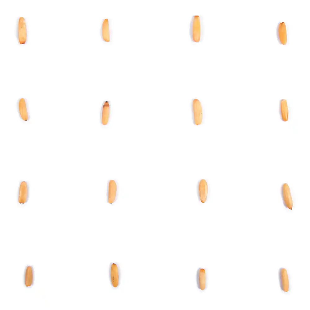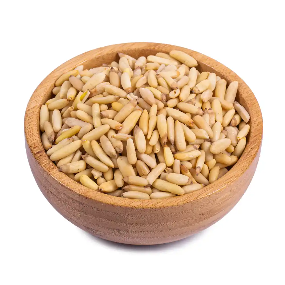 درختان کاج حدود 25 سال طول میکشد تا شروع به تولید دانههای خوراکی کنند. در ضمن، فرآیند برداشت آجیل کاج، فوقالعاده کار دشوار و فشردهای است. جای آجیل کاج در مخروط کاج است. حدود دو هسته کاج در زیر هر فلس مخروط وجود دارد. برای اینکه بذرها را از مخروطهای محکمتر جدا کنند، آنها را در کیسهای قرار میدهند و به مدت کمتر از یک ماه در آفتاب خشک میکنند تا فلسها باز شوند. سپس دانهها با دست، از هر مخروط جدا میشوند. مرحله نهایی در فرآیند برداشت، پوسته پوسته شدن است. مانند پسته و بعضی از آجیل و مغزها، هر دانه کاج در داخل یک پوسته بیرونی قرار دارد که باید جدا شود.